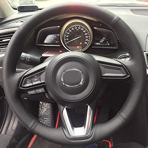 WYYYFA coprivolante per Mazda CX-3 CX3 CX-5 CX5 2017 2018, Coprivolante per Auto Cucito a Mano in Pelle Nera Coprivolanti per Auto
