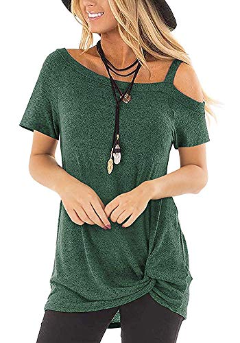 Wzclotay Top Senza Spalline Donna Manica Corta Camicia Elegante Estate T Shirt Verde S