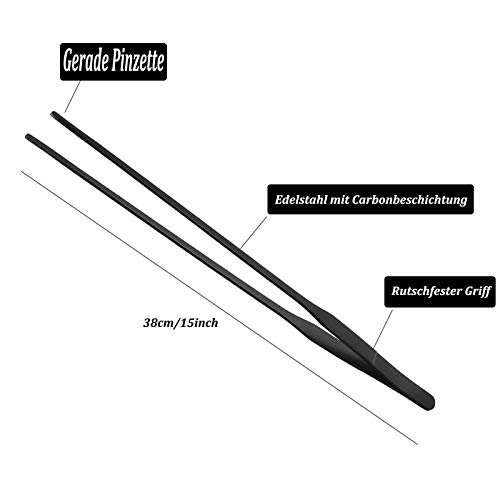 Wzong - 2 pinzette lunghe per acquari, extra lunghe, in acciaio inox, dritte e curve, per acquari, 38 cm, colore: Nero