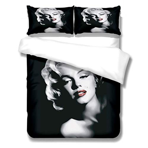 WZSZSA Set Copripiumino Marilyn Monroe 3D,Microfibra Set di Biancheria da Letto con Design Chiusura a Cerniera,3 Pezzi,con 2 federe e 1 Copripiumino 220x240cm