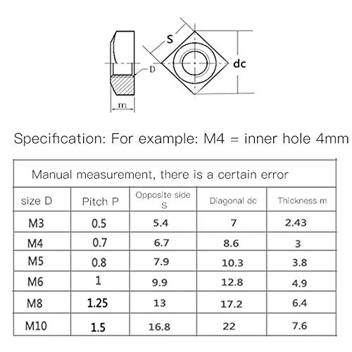 Quantità e dimensioni: Riceverai circa 150 pezzi dado quadrati, disponibili in 6 diverse misure(contiene M3, M4, M5, M6, M8, M10), di dimensioni diverse e in quantità sufficiente a soddisfare il vostro fabbisogno giornaliero.