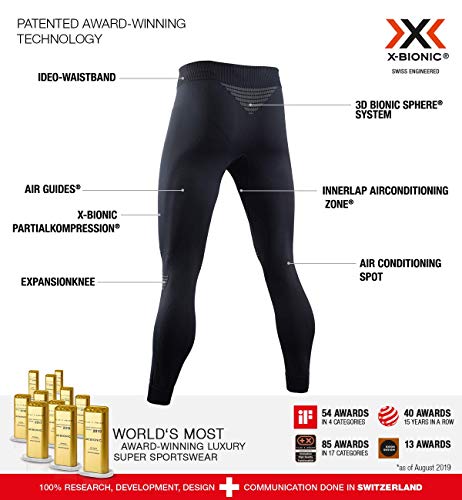 X-Bionic Invent 4.0 - Pantaloni Termici da Corsa a Compressione Uomo - Alte Prestazioni per Running, Sci, Ciclismo, Fitness, e Sport Invernali - Nero, L