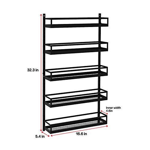 X-cosrack Portaspezie a parete, 5 livelli regolabile in altezza per porta dell'armadio della cucina, supporto da appendere a doppio uso con ganci, brevettato di colore nero