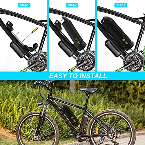 X-go Batteria Ebike 36V 10.4AH 364Wh agli ioni di litio Mountain Bike Battery Pack Bottiglia tipo 4 pin adatto per 200W 250W 350W biciclette elettriche con caricatore e supporto (36V 10AH Nero 4port)
