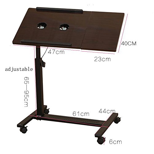 X-L-H Scrittorio Regolabile Del Supporto Del Computer Portatile Della Tavola Del Sofà Della Tavola Del Computer Di Altezza Di Altezza Con La Ruota ( Colore: Noce, dimensioni: Without fan )