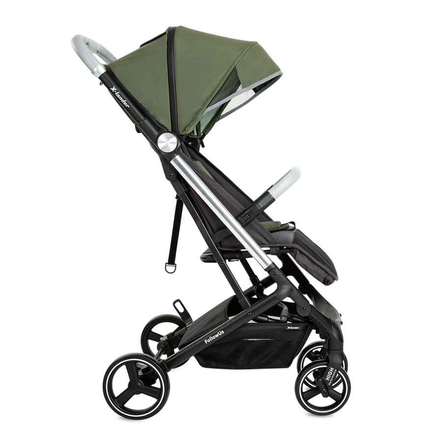 Moderno design, alta qualità e sicurezza X-Follow - il nostro ultimo, esclusivo buggy, elaborato in ogni modo. È caratterizzato da un moderno e sofisticato design che è pienamente in linea con la tendenza. Non è solo elegante, ma anche solido e stabile. Il passeggino facile da usare può essere piegato con una sola mano, è molto leggero e compatto. Passeggino alla moda L'X-Follow è caratterizzato da un design ed un'estetica alla moda. La forma semplice e minimalista dà al buggy un carattere esclusivo. C'è un'ampia scelta di colori, gli spallacci coordinati per colore si armonizzano perfettamente con il look generale del passeggino e formano una combinazione elegante in una palette di colori pastello. Viaggiare comodamente per le vie della città Le ruote con pneumatici in EVA espansa offrono una maggiore resistenza alle forature con lo stesso comfort di guida. A differenza degli pneumatici, le ruote in EVA richiedono molta meno manutenzione e difficilmente si danneggiano. Inoltre, ruotano in modo particolarmente silenzioso, offrono una buona ammortizzazione e sono molto resistenti al calore e all'invecchiamento. In aggiunta, c'è l'eccellente sospensione, che riduce tutte le vibrazioni e assorbe gli urti. Questo permette al tuo bambino di fare un pisolino in pace. Le ruote anteriori sono girevoli, il che rende il passeggino molto maneggevole e comodo da guidare. È importante che il viaggio non sia solo un piacere per il bambino, ma anche per te. Grazie ai cuscinetti a sfera di alta qualità nelle ruote, si può anche guidare il buggy con una sola mano. La regolazione morbida e silenziosa della seduta è importante se il bambino si addormenta durante una passeggiata. Lo schienale può essere regolato a piacere e adattato alla posizione di riposo del bambino. Adatto a qualsiasi tempo Per evitare che il tuo bambino sia accecato dal sole, puoi facilmente ingrandire la cappottina con il pannello aggiuntivo. questo protegge anche dalle correnti d'aria fredda. Nella stagione cald