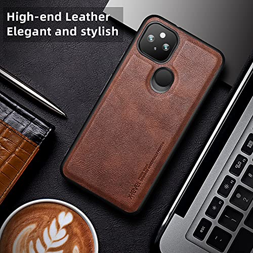 X-level Custodia per Google Pixel 5 Cover, [Earl 3 Serie ] Pelle Cuoio Custodia Aannata Protettiva Sottilein TPU Morbida, Cover Protettiva Anti Scivolo Custodia Google Pixel 5 5G - Marrone