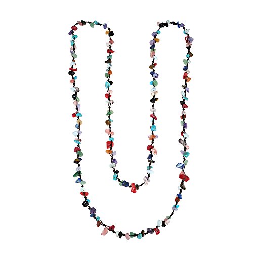 X-long - Collana in corda di cera fatta a mano multi pietra pepita, Resina Vetro resina Corallo Vetro, turchese ametista quarzo