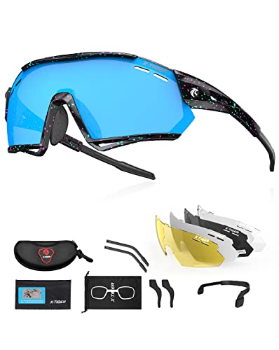 X-TIGER Occhiali Da Ciclismo,Polarizzati per TR90 Occhiali Bici MTB Con 5 Lenti intercambiabili per Ciclismo Corsa Pesca Guida (EXS14-5)