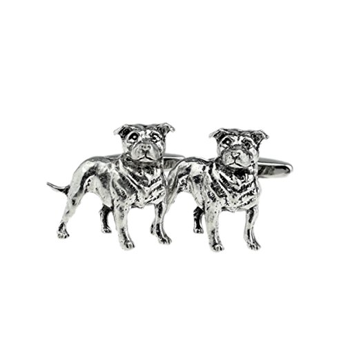 Gtr X2TSBCD17 - Gemelli da uomo in peltro Staffordshire Bull Terrier, in scatola di similpelle