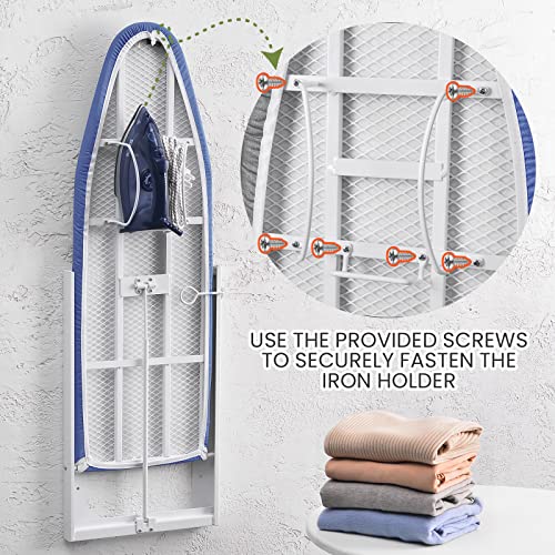 Xabitat Asse da stiro a parete con supporto in ferro | 91,9 x 31 cm Asse in ferro pieghevole compatta per piccoli spazi, salvaspazio con rivestimento in tessuto di cotone, bianco e blu