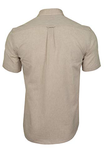 Xact Camicia da uomo in lino a maniche corte, Pietra, M
