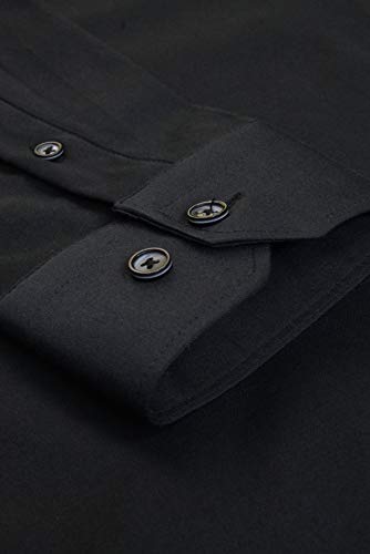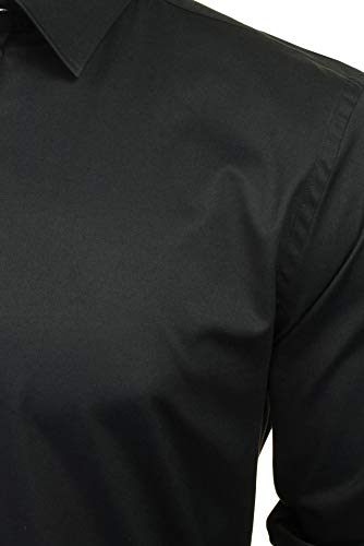 Xact Camicia da uomo a maniche lunghe in popeline elasticizzata, vestibilità aderente, Nero, 3XL
