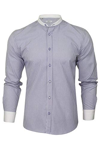 Xact - Camicia da uomo a righe con colletto bianco, a maniche lunghe