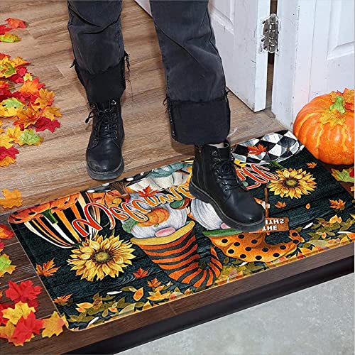 XADITON Zerbino Decorativo di Benvenuto Autunnale,Tappetino di Gnomo Zerbino Antiscivolo e Lavabile in Zucca Girasole Zerbino in Gomma per Porta Posteriore per Interni Esterni,K