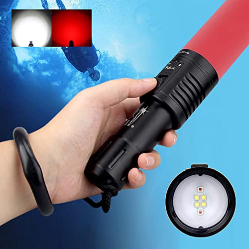 Xaeiow Torcia da immersione, 1200 lm, D02, impermeabile, di sicurezza subacquea per video, fotografia, torcia con impugnatura