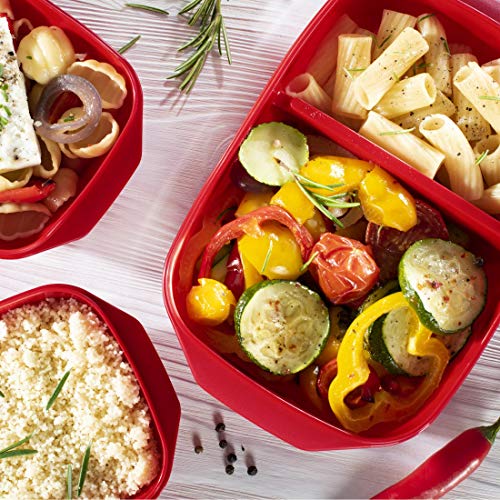Scatola per forno a microonde in plastica: set di due contenitori da 0,6 l e una scatola da 1,3 l con suddivisione in due scomparti per una facile organizzazione