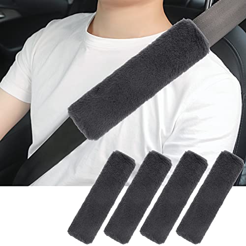 XAVSWRDE 4 Pz Imbottitura Cintura di Sicurezza Guaine per Cintura di Sicurezza in Finta Pelliccia di Coniglio 25 * 13cm Copertura per Cintura di Sicurezza per Auto per Adulti e Bambini (Grigio)