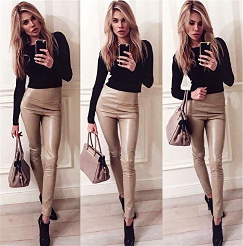 XBECO Pelle Autunno Inverno Donne Leggings Magro Matita dell'unità di Elaborazione Leggings Slim Faux Pantaloni di Pelle Pantaloni Femminili di Moda Spesso in Pile Buona Elasticità