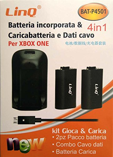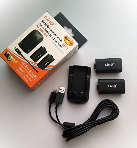 Xbox One/Xbox One S - Batteria ricaricabile da 450 mAh + kit di ricarica USB per controller wireless Xbox One/Xbox One S, colore nero LinQ® P4501