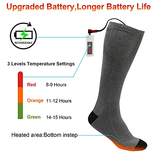 ✔ 3 impostazioni di calore: queste calze riscaldate sono progettate con 3 impostazioni di calore, tra cui calore elevato (55 ° C-60 ° C, 8,5-9 ore), calore medio (50 ° C-55 ° C, 12 - 12,5 ore) e basso calore (45 ° C-50 ° C, 16 - 18 ore). Questi calzini elettrici riscaldati ideali per mantenere i piedi caldi in tutto l'inverno.