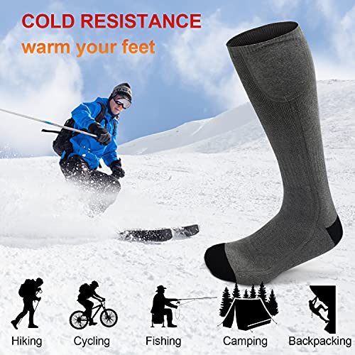 XBUTY Calze Riscaldate Ricaricabili, Calzini Riscaldati Doppia Faccia Durevole e Lavabile, Calze Riscaldate Elettrica per Ciclismo, Pesca, Trekking, (L, grigio)