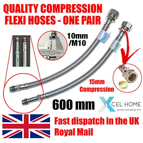 Xcel Home FPM10-COMP-600(X1) FPM1015600COM 2 x 10 mm x 15 mm a compressione BSP (600 mm di lunghezza) rubinetto monoblocco cucina rubinetto raccordo flessibile tubi tails-FBA, argento