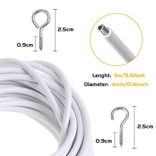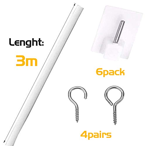 ✓ La confezione include: 1 x filo per tende da 3 metri, 4 x ganci, 4 x occhi e 6 x ganci autoadesivi. questi articoli sono molto adatti per appendere tende a rete e tulle a casa.
