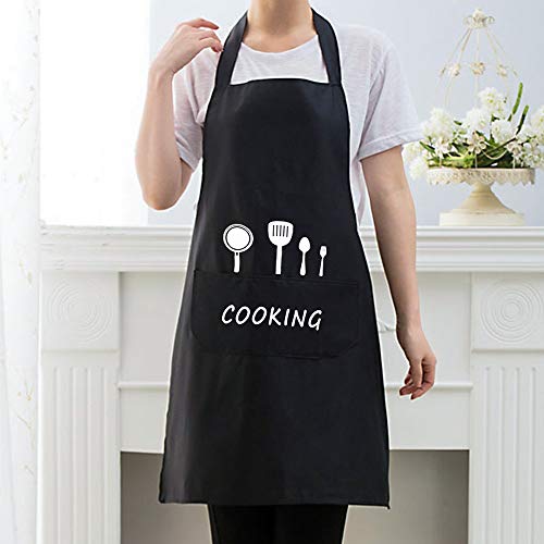 XCOZU Grembiule da Cucina Grembiule da Cuoco, Grembiule da Cucina per Donne, Uomini e Adulti, Impermeabile a Prova di Olio, Grembiule Nero con Tasche per Catering, Cottura, Barbecue, Ristorante