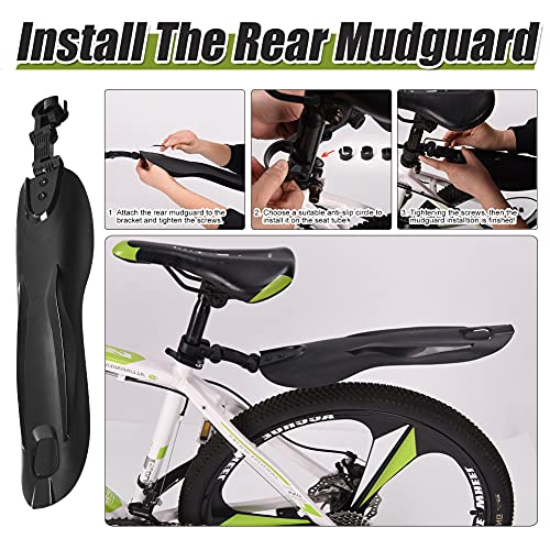 Facile da installare: incluso un manuale utente, 1 confezione di componenti e chiave a brugola, puoi usarli per montare o rimuovere facilmente il parafango della bici. La chiave a brugola può anche essere utilizzata per altre riparazioni quotidiane. Si prega di fare riferimento alle installazioni per installare parafanghi per biciclette.