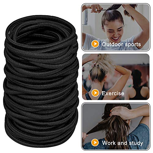 XCOZU 30 Pezzi Elastici per Capelli Nero, Elastici Capelli per Bimba e Donne con Capelli SpessI, Elastici per Capelli Senza Metallo per coda di cavallo 50 mm x 4 mm