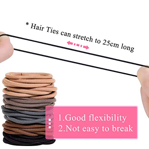 XCOZU 100 Pezzi Fasce per Capelli Donna, 5 Colori Elastici per Capelli Donne e Ragazze, 4 mm Senza Metallo Fasce Elastiche per Capelli Supporto per Coda di Cavallo, Marrone Grigio Nero