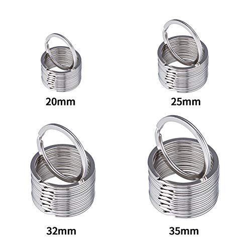 4 diverse dimensioni: 40 anelli portachiavi divisi hanno 4 diverse dimensioni, 3/4", 1", 3,2 cm e 3,6 cm (20 mm, 25 mm, 32 mm e 35 mm) di diametro, 10 pezzi per ogni dimensione, per soddisfare le vostre diverse esigenze.