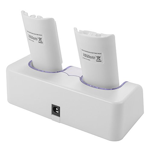 XCSOURCE doppio Charging Dock con 2 pacchetti di batterie ricaricabili 2800mAh e luce a LED per Nintendo Wii Remote Controller Bianco AC638