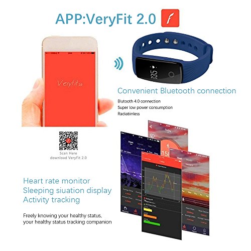 XCSOURCE frequenza cardiaca OLED Intelligente Bracciale Impermeabile Sport Salute Activity Tracker Fitness Bluetooth Wristband Contapassi Sonno Monitor (Blu) AC494