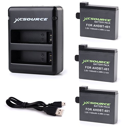 XCSOURCE 3X Li-Ion 1160mAh AHDBT-401 Batteria + Doppia Porta Batteria Caricabatteria per Gopro HD Hero 4 BC423