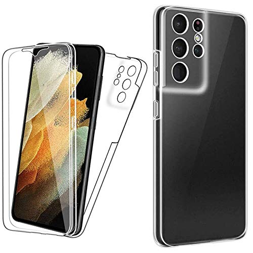 XCYYOO Cover per Samsung Galaxy S21 Ultra,2 in 1 Custodia Transparent Silicone TPU e PC 360 Gradi Full Body Protettiva Premium Resistente Ai Graffi Case Ultra Slim【No Dots】