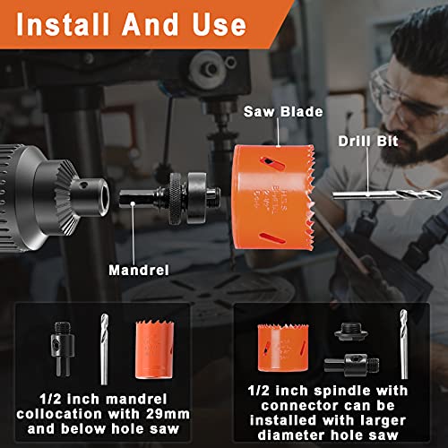 XDOVET Seghe A Tazza, Set di Seghe A Tazza Bimetalliche da 17 Pezzi 3/4" a 2-1/2", con Mandrino, Adattatore, Chiave Esagonale e punta da Trapano, per Metallo, Pannelli in PVC e Parete