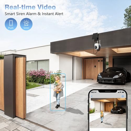 【Rilevamento del Movimento e Avvisi in Tempo Reale】Tre modalità di allarme: allarme a sirena, allarme spotlight e notifica push su APP. Con la funzione di allarme sirena e faretto attivata, non solo si riceverà una notifica di allarme tramite App, ma anche telecamera wi-fi esterno con pannello solare emetterà un suono di allarme e accenderà il faretto al buio, in modo da mettere efficacemente in guardia gli intrusi.