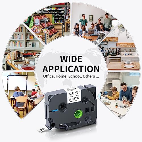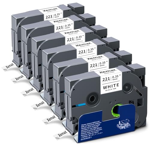 Colore e Confezione: 6x Compatibile per Tze-221 Nero su Bianco Compatibile per Brother PT Nastri per Etichette;