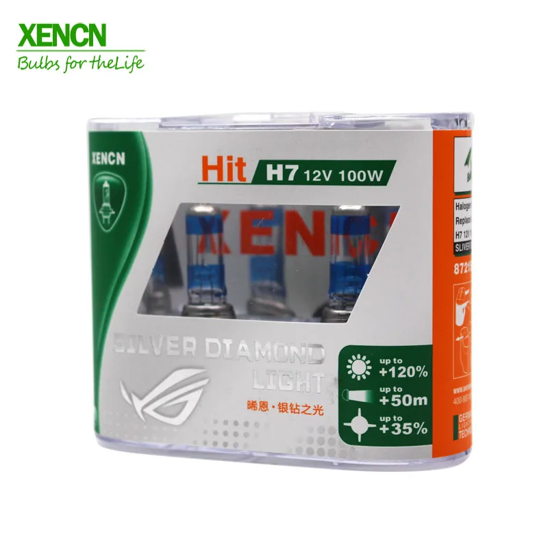 XENCN H7 12V 100W Px26D Silver Diamond Light High Power Autolamps Car Lighting Source Halogen Xenon Headlight 30% More ligh 2PCS