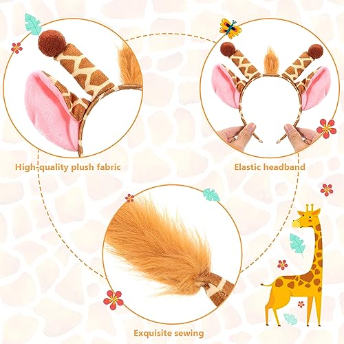 CUTE GIRAFFE TAIL: Il set di costumi animali imita una giraffa con motivi luminosi, orecchie carine e coda. La coda della giraffa è completamente ricoperta da un comodo tessuto a costine e include un morbido peluche. Ogni elemento di questo kit giraffa carino è comodo e facile da indossare.