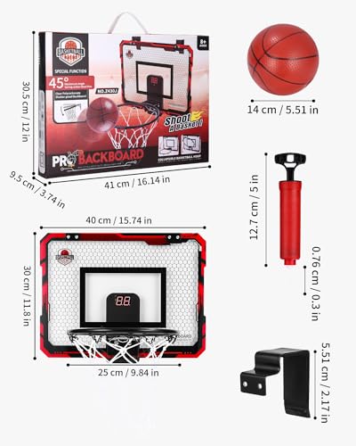 Mini canestri da basket - Il nostro mini canestro da basket per porta include un tabellone segnapunti elettronico, 4 mini palloni da basket e una pompa in modo da poterlo gonfiare e utilizzare immediatamente. Viene fornito con manuali chiari e tutti gli strumenti necessari, ha tutto il necessario per giocare una partita di basket indoor.