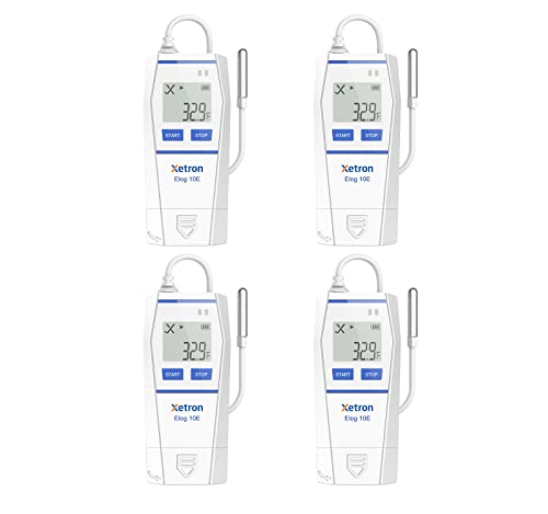 Xetron Data Logger Temperatura USB con Sonda Esterna 1,2 M 4Pz Elog10E Registratore Dati Temperatura Riutilizzabile con Certificato e Rapporto PDF, Datalogger Temperatura Frigorifero 32000 Punti