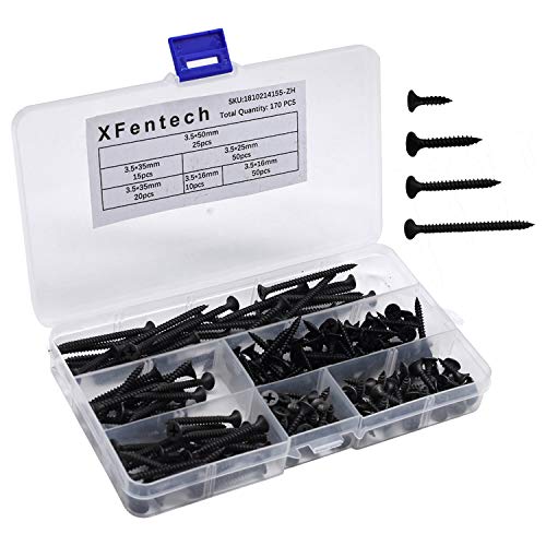 XFentech Viti per Legno - Kit di Viti per Legno Autoperforanti a Filettatura Incrociata, Acciaio al Carbonio, 170 pezzi