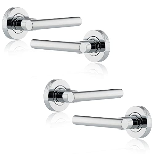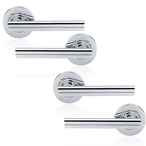 XFORT Maniglia per porta a forma di rosa, cromata lucidata, con leva a T, ideale per porte interne in legno per casa e ufficio (2 paia)