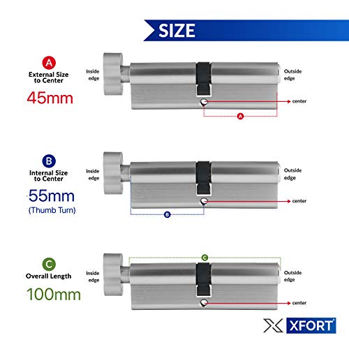 XFORT Serratura a Cilindro per Porta Europea con 3 Chiavi, Antitrapano, Antifurto con Chiave, Alta Sicurezza per Porte in Legno, UPVC, Doppia Cromatura, Cilindro a Pomolo 45/55T (100 Mm)