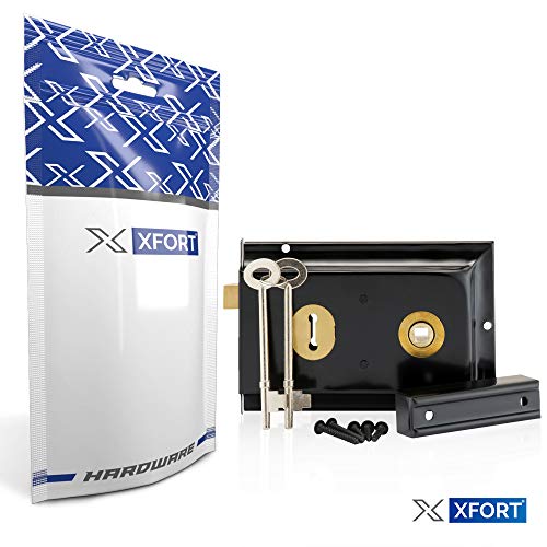 XFORT Tradizionale Rimlock, Sashlock A Montaggio Superficiale Con Chiavistello Integrato E Catenaccio A Chiave, Ideale Per Porte In Legno O Cancelli Su Annessi (Nero - 6 x 4 pollici)