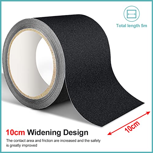 XFXIA Nastro Adesivo Antiscivolo Nero Nastro Antiscivolo 10cm*5m Strisce Antiscivolo Per Scale Interni/Esterni (10cm*5m, Nero)