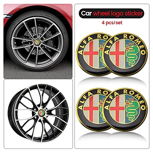 XGAGCF 4 Pezzi Auto Coprimozzi Ruota Centro Tappi Cerchioni Mozzo Badge Hub Center Caps Adesivi, per Alfa Romeo Giulietta Spider GT Giulia Mito 147 156 56MM Auto Decorativo Emblema Accessori, Gold